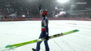 W swoim ostatnim konkursie PŚ na Wielkiej Krokwi Kamil Stoch zajął 42 miejsce. Po konkursie Mistrz z Zębu pozdrowił publiczność.
