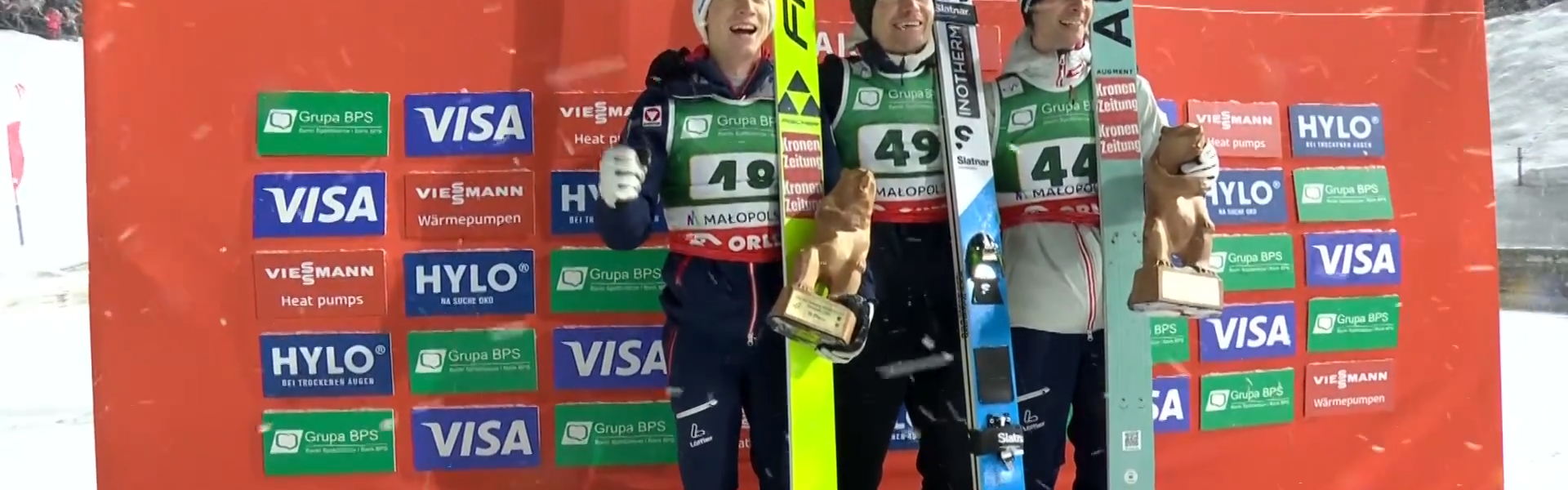 Dla 29-latka triumf na Wielkiej Krokwi jest 11 zwycięstwem w PŚ, który przez nieobecność rywali dał mu awans na 3 miejsce w Klasyfikacji Generalnej.