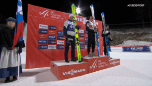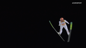 Anze w drugiej serii skoczył bardzo podobnie, bo 128,5 metrów, co dało mu bezpośrednio po skoku prowadzenie i mógł już tylko czekać na to, co zrobi Austriak.