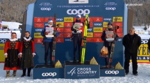 Ponad 20 sekund z tyłu doszło do ostrej walki 3 zawodniczek o podium. W sprincie najlepsza okazała się Jonna SUNDLING i to właśnie Mistrzyni Olimpijska w sprincie wyrwała podium w biegu na ponad 20 kilometrów! Po fotofiniszu 4 miejsce zajęła 32-letnia Reprezentantka Norwegii Anne Kjersti KALVAA, a piąte liderka PŚ Jessie DIGGINS. Szósta na metę wkroczyła Flora DOLCI, która pod nieobecność kontuzjowanej w stopę Delphine CLAUDEL jest liderką Francuzek.