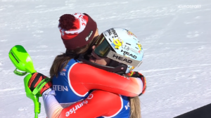 Wtedy nadszedł czas na start Mikaeli SHIFFRIN. Mistrzyni Świata w Kombinacji Alpejskiej pojechała świetnie, jak najlepiej w tym momencie tylko mogła i na linii mety uzyskała czas pozwalający zmieścić się pomiędzy Kathariną, a Wendy!