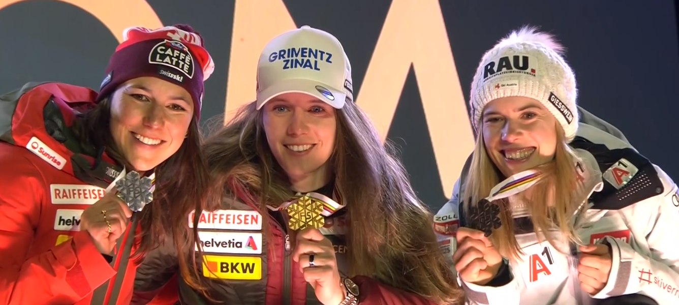 Wieczorem podczas ostatniego wydarzenia na MEDAL PLAZIE panie otrzymał medale. Dla Camille RAST jest to oczywiście pierwszy i od razu złoty medal MŚ. Wendy HOLDENER za to powiększyła swoją kolekcję do 7 medali, a na MŚ w SAALBACH jako jedyna dotąd zdobyła 3 medale – ten wynik może wyrównać w niedzielę jeszcze Loic MEILLARD. Dla Kathariny LIENSBERGER nie jest to pierwszy medal, ale wywalczony po kryzysie.