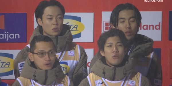 Reprezentacja Japonii nie zawiodła oczekiwań i od pierwszej kolejki, a więc od 223 metrowego skoku Ryoyu plasowała się w ścisłej czołówce. Czynnikiem decydującym o sukcesie Japonii miała być postawa najstarszego w drużynie, a więc Tomofumi Naito.