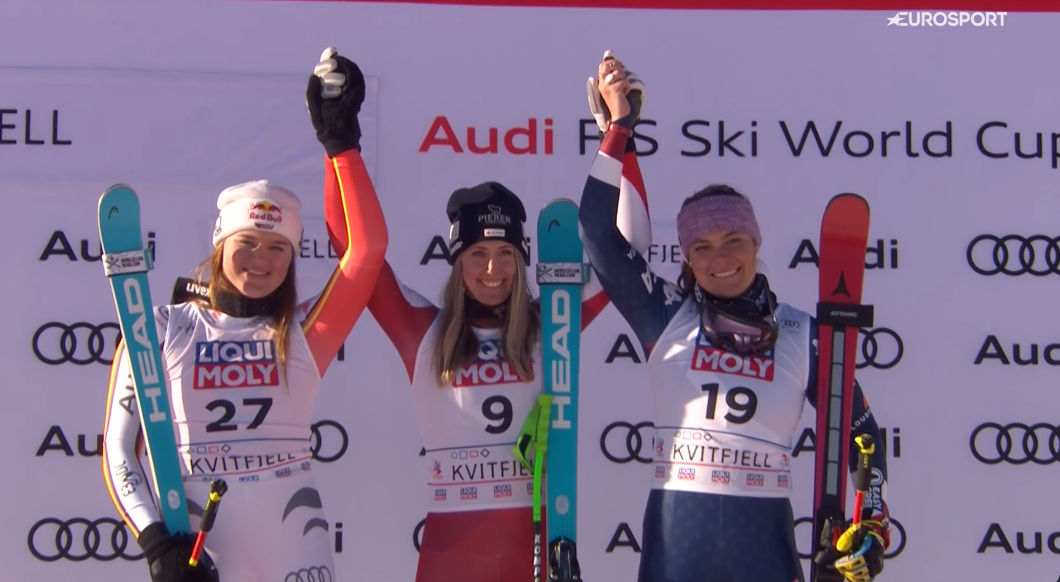 Tuż po niej z góry wystartowała kolejna z rodaczek Mistrzyni Świata, Lindsey VONN. 40-latka po kilkunastu dniach przerwy zaprezentowała się udanie, notując najlepsze rezultaty od świetnego weekendu w ST.ANTON, gdzie była dwukrotnie w TOP8 – Lindsey VONN z stratą 1,10 sekundy zajęła dzisiaj 13 miejsce.