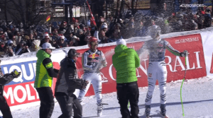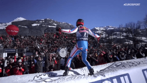 Przewaga na mecie i tak była NOKAUTUJĄCA – Z MARCO ODERMATTEM WYGRAŁ O 0,91 SEK!!!! Cyprien SARRAZIN po zatrzymaniu się zdjął narty i wskoczył na dmuchaną bandę, z której pozdrowił kibiców!