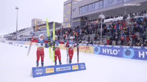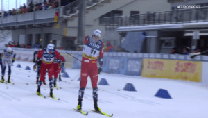 Martin NYENGET pierwszy wybiegł na ostatnią, długą prostą i doszło do ostrego finiszu. W walce do ostatnich metrów szybszy okazał się jednak Erik VALNES, który pokonał na kresce właśnie M.NYENGETA oraz Paala GOLBERGA, który wraca na podium po przerwie.