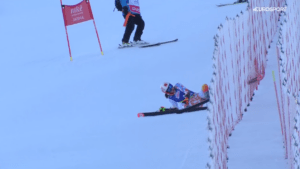 Niestety, po kilku bramkach zaliczyła uślizg. Petra niestety nie upadła od razu na trasę jak Włoszka, a została podbita do góry i podczas lądowania wykręciła na chwilę prawą nogę!
