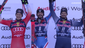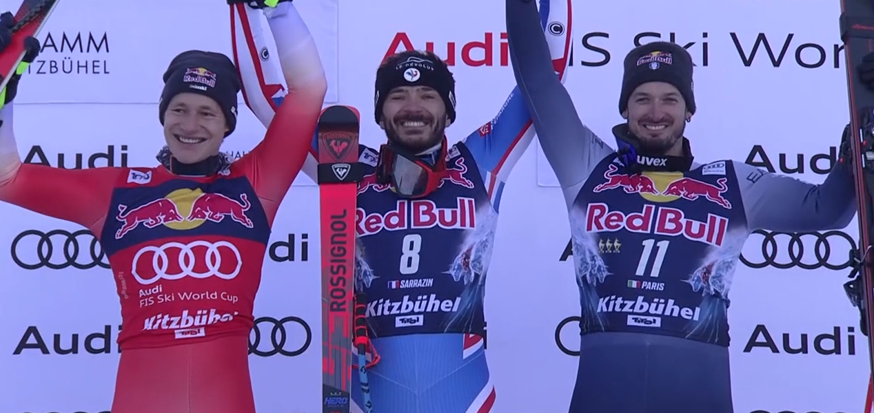 CYPRIEN SARRAZIN stał się 3 triumfatorem HAHNENKAMMRENNEN z Francji po J.M.KILLY oraz L.ALPHAND! Dla Marco ODERMATTA jest to 12 podium w 13 starcie. Dominik PARIS tak jak przed tygodniem uzupełnia podium z dużą stratą.