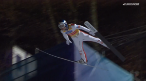 Tuż po nim z cały czas 14 belki ruszył zawodnik z miejscowego klubu – Jan HOERL. 26-latek zaakceptował wyzwanie Daniela i skoczył JESZCZE DALEJ NA ODLEGŁOŚĆ 143 METRÓW! TO DAŁO BY TRIUMF W CAŁYM 73.TURNIEJU 4 SKOCZNI, gdyby nie lądowanie, które ledwo wykończył!