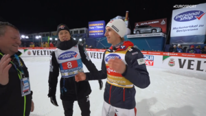 Po chwili niebywałych reakcji każdego z dzisiejszych TRZECH AUSTRIACKICH KRÓLI doszło do symbolicznego przekazania Złotego Orła od Ryoyu dla Daniela. Następnie pierwszy triumfator 73.TURNIEJU 4 SKOCZNI urodzony w 21 wieku został przez Manuela FETTNERA i Markusa MUELLERA wyniesiony na ramionach przed komplet widzów!