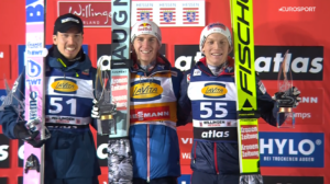 To dało całą serię świetnych skoków – Maximilian ORTNER poleciał na 139 metr, Kristoffer Eriksen SUNDAL na 141,5 metr, a Andreas WELLINGER wreszcie zadowolił kibiców i poleciał na 142 metr! Anze prowadził do skoku Johanna Andre FORFANGA. Również szukający pierwszego triumfu w tym sezonie Norweg poleciał na 147 METRÓW, A WIĘC PO RAZ PIERWSZY W TEN WEEKEND DOTKNIĘTO ROZMIARU SKOCZNI! To oznaczało wyraźne, ponad 7 punktowe prowadzenie nad całą grupą zawodników z Anze na czele.