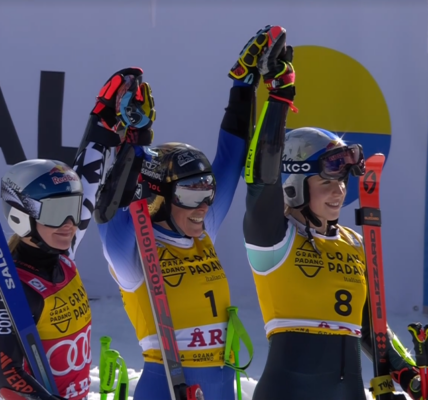 Federica BRIGNONE w niedzielę znów na drugiej pozycji, tym razem o zaledwie 0,04 sekundy. Na 3 miejscu wczorajsza triumfatorka, Marta BASSINO. Dla Włoszki jest to oczywiście zarazem drugie podium w sezonie.