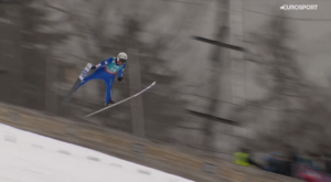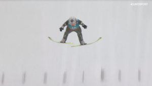 Za moment po sygnale wydanym przez Stefana HORNGACHERA z 11 miejsca o awans do TOP10 i zarazem FINAŁOWEGO konkursu w niedzielny poranek ruszył Markus EISENBICHLER. Reprezentant Niemiec w pięknie przygotowanych nartach od FISCHERA, na których widniały podziękowania niestety w 2 serii po błędzie nie poleciał daleko.