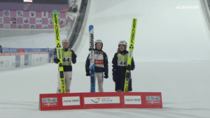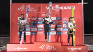 Drugie miejsce w sobotnim konkursie po dwóch bardzo dobrych próbach wywalczył Naoki Nakamura, a podium uzupełnił atakujący z 9 lokaty po 1 serii Ren Nikaido, który przy silnym wietrze z tyłu skoczni skoczył aż 129,5 metra.