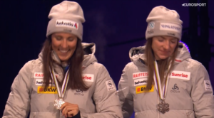 Drugie czas uzyskały Reprezentantki Szwecji – walcząca o 3 medal Jonna SUNDLING i Maja DAHLQVIST, a trzeci czas zanotowały Reprezentantki NORWEGII – Lotta Udnes WENG oraz wicemistrzyni Świata Kristine SKISTAD.