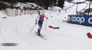 Gdy na swoją drugą zmianę wyszedł Johannes KLAEBO doszło do ostatecznego rozstrzygnięcia walki o ZŁOTO. Lider Klasyfikacji Generalnej PŚ nie czekał na rywali i od początku pętli przyłożył bardzo mocne tempo, które spowodowało już na pierwszym podbiegu wyrobieniem sobie ponad 7 sekund przewagi nad rywalami, a na drugim, najdłuższym podbiegu podbicie tej przewagi do ponad 10 sekund! Z tyłu w walce o medale pozostawało aż 9 par – FINLANDIA, SZWECJA, WŁOCHY, FRANCJA, USA, CZECHY, SZWAJCARIA, KANADA oraz NIEMCY.