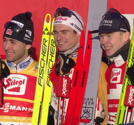 Podium uzupełnił cały czas czekając na pierwszy triumf w PŚ Even NORTHUG. Po kilku sekundach rozegrała się walka o 4 miejsce, z której najlepiej wyszedł Richard JOUVE. Stawkę uzupełnili Lucas CHANAVAT oraz nie omijający żadnych zawodów Edvin ANGER.