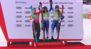 Jako 10 na trasę wyjechała Sofia GOGGIA, która tak jak Fede w dwa poprzednie dni zajmowała miejsca 4 oraz 6 i również chciała zakończyć weekend w NORWEGII na podium. Wicemistrzyni Olimpijska po skutecznym przejeździe wskoczyła na 2 miejsce, przegrywając z swoją rodaczką o zaledwie 0,09 sekundy.