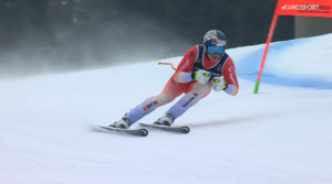 Po kilku sekundach nadszedł czas na start brązowego medalisty MŚ, Alexis MONNEY. 24-latek po raz 6 licząc treningi pojechał bardzo agresywnie i po raz kolejny nie licząc Super Giganta, z którego wypadł skutecznie. Reprezentant SZWAJCARII 2 od góry prowadził, a na ostatnim odcinku z pochyłym zakrętem DAYTONA jeszcze przyłożył kolejne setne sekundy rywalom i na metę wjechał z czasem lepszym o 0,46 sekundy od Włocha! Alexis nie ukrywał zadowolenia na mecie, a za bandą zadowolony był również jego partner, Tanguy NEF.