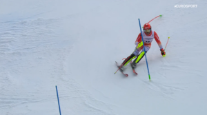 Reprezentant Szwecji wykonał FANTASTYCZNY przejazd, nokautując wszystkich. Na mecie objął prawie 4 sekundowe prowadzenie, a jak się okazało na koniec zawodów uzyskał zdecydowanie najlepszy czas 2 przejazdu – drugiego zawodnika w SLALOMIE pokonał o około 1,50 sekundy! SZWECJA objęła więc na bardzo długi czas prowadzenie.