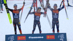 Jules LAPIERRE jako pierwszy zdobył ALPE D’CERMIS i tym samym odniósł pierwszą wygraną w PŚ!!! Drugi dobiegł Friedrich MOCH, a 14 sekund za nim na mecie był Hugo LAPALUS. To oznaczało, że teraz trzeba czekać na straty Norwegów.
