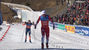 Po dotarciu na metę z bardzo słabym czasem Arsi RUUSKANENA, oraz z trochę lepszymi rezultatami, ale dającymi zaledwie drugą dziesiątkę w wykonaniu Federico PELLEGRINO oraz Simena Hegstada KRUEGERA na końcówkę dotarł Iver Tildheim ANDERSEN.