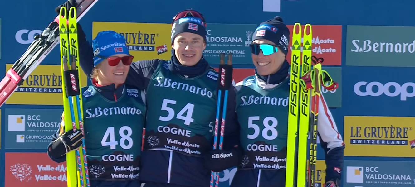 Bardzo zadowolony z podium był Iver Tildheim ANDERSEN, który tym samym wywalczył 3 podium w ciągu ostatnich 3 Alpejskich weekendów i chyba podobnie jak w sprincie jego rówieśnik, Ansgar EVENSEN wyrwał miejsce w kadrze na MŚ! Dla Martina NYENGETA jest to już 6 podium w tym sezonie, ale pierwsze od połowy grudnia.