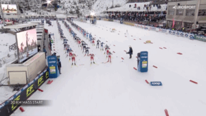 Harald Oestberg Amundsen wygrywa w Ruka-Kuusamo bieg na 20 kilometrów ze startu wspólnego stylem dowolnym.