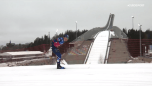 Równo o 13:30 Jarl ruszył po 19 podium w tym sezonie. Zgodnie z ostatnimi tygodniami Jarl ma coraz lepszą formę na trasie biegowej, co oznacza, że po idealnym skoku dokłada rywalom jeszcze na trasie.