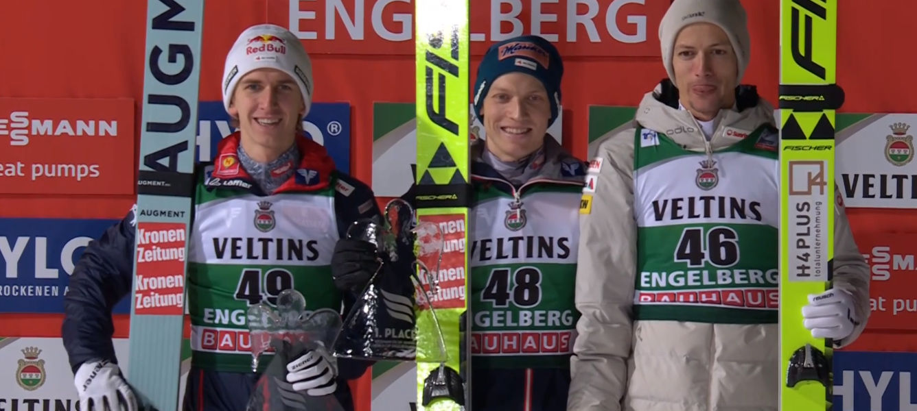 Obydwaj odrobili trochę punktów do Piusa PASCHKE i w tym momencie tracą do niego poniżej 200 punktów. A trzeci dzisiaj Gregor DESCHWANDEN stał się pierwszym Szwajcarem, który stanął na podium w ENGELBERGU od dokładnie 10 lat! Gregor wyprzedził również w generalnej S.KRAFTA i jest teraz w niej 4!