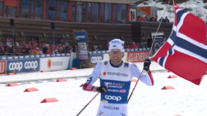Obrońca tytułu wziął flagę NORWEGII i wraz z nią w fantastycznym stylu pokonał ostatni zjazd, ostatni ciasny zakręt przed wielką trybuną oraz ostatnią prostę, na której pozdrowił wszystkich z Rodziną Królewską na czele i ostatecznie przekroczył linię mety zdobywając 3 ZŁOTO, a 4 MEDAL w TRONDHEIM! Jarl po finiszu nie ukrywał emocji.