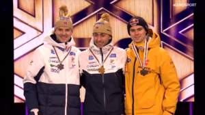 Joergen, Vinzenz i Jens ostatecznie pewnie pokonali grząski ostatni łuk i razem w trójkę wybiegli na ostatnią prostą, a tam po fantastycznym finiszu lepszy okazał się Joergen GRAABAK! Brąz wyrwał Jensowi Vinzenz GEIGER, a to oznaczało że Vinzenz tak jak Jarl zdobył 4 medale MŚ!