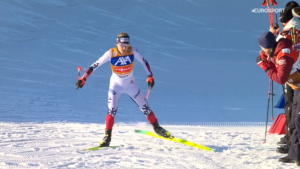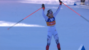 Reprezentantka Norwegii najpierw szybko odrobiła 20 sekund straty poniesionej o poranku na skoczni normalnej, a następnie szybko zostawiła Minję za swoimi plecami i na mecie triumfowała z przewagą prawie 40 sekund!