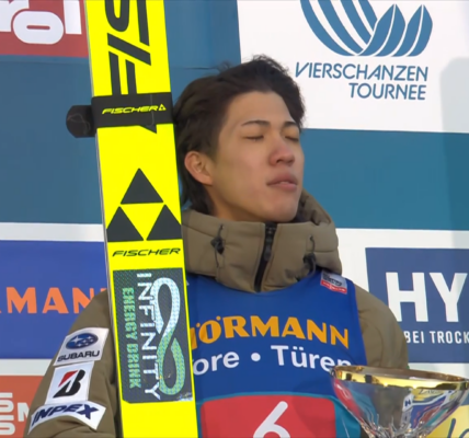 Tym razem jednak jego przewaga była naprawdę solidna – drugi, którym po świetnym skoku był Einar Luraas Oftebro tracił do niego przed decydującym biegiem 37 sekund.