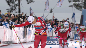 W tym momencie bardzo mocno przyspieszył Johannes Klaebo, który po wykonaniu kilku swoich słynnych, mocnych kroków pod górę wypracował sobie kilka metrów przewagi nad swoimi rodakami, z którymi wbiegł na ostatnią prostą.