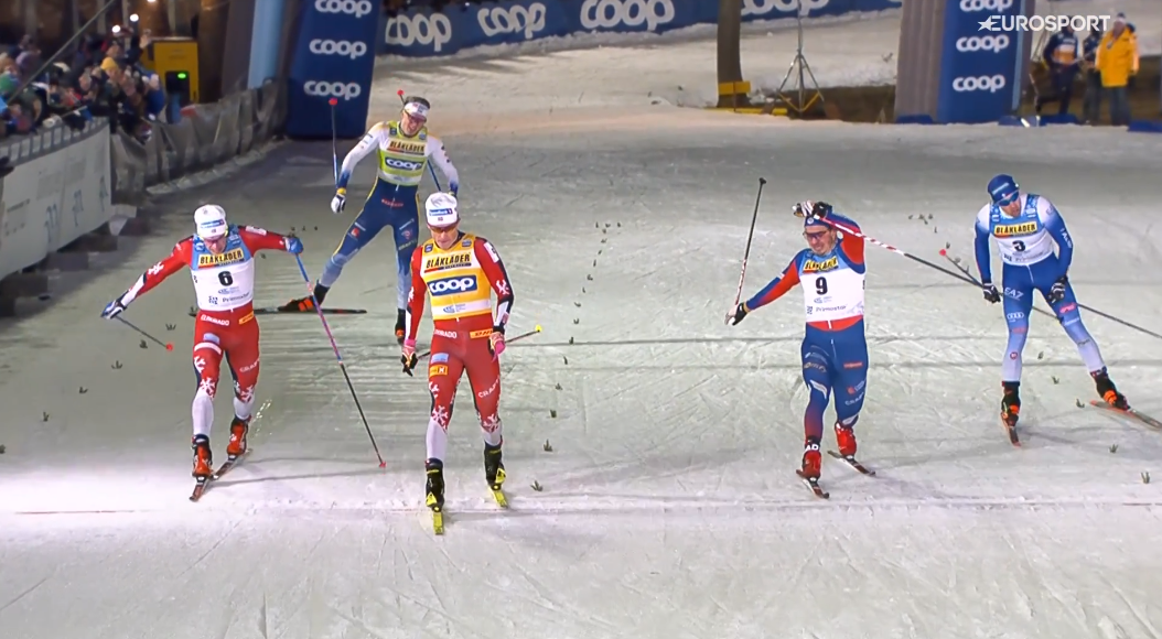 Ostatecznie 4 na metę wbiegł jeszcze parę metrów wcześniej trzeci Federico PELLEGRINO, a po piąte miejsce metę z stratą paru metrów do rywali przekroczył Edvin ANGER. Po ponad 20 sekundach metę przekroczył uzupełniając TOP6 Erik VALNES.