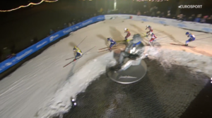 Na zjeździe przy sztucznych ogniach Johannes wyszedł na prowadzenie, dzięki czemu mógł jako pierwszy wjechać w ciasny zakręt wokół drzew. Bardzo blisko był jednak cały czas Jules CHAPPAZ, który na wyjściu na ostatnią prostą prawie zrównał się z Johannesem, któremu zostawił niezbyt dużo miejsca pod bandą.