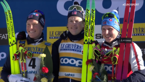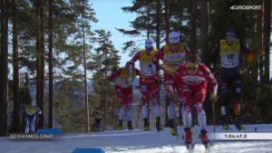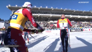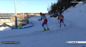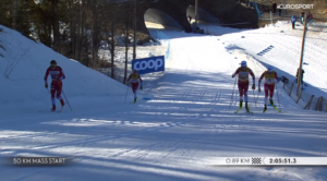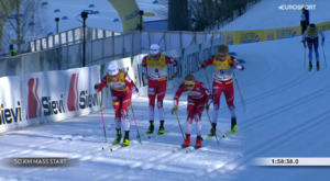 W rozgrywce o triumf na 2 kilometry do mety pozostała więc czwórka graczy – trójka, która walczyła na MŚ oraz rewelacyjny, debiutujący w tym sezonie w elicie młody Andreas REE, który na MŚ był tylko rezerwowym i teraz na pewno chciał pokazać trenerom, że była to błędna decyzja.