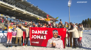 Po kolejnym na mecie Florianie NOTZU jako 22 dobiegł Jonas BAUMANN. Na kończącego karierę, również 34-letniego Reprezentanta Szwajcarii na mecie czekano z banerem, szampanem i podziękowaniami. Pogratulował mu również Clement PARISSE, który sezon, w którym powrócił po monoukleozie zakończył 23 miejscem.