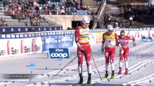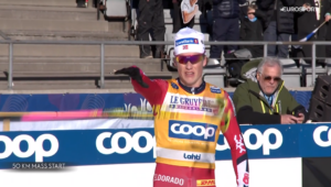 Martin NYENGET i Simen Hegstad KRUEGER nie odpuszczali, ale Johannes KLAEBO również nie odpuścił i ostatecznie z bezpieczną przewagą kilku metrów, która pozwoliła na pozdrowienie publiczności i wykonanie gestu triumfu Johannes KLAEBO WYGRAŁ DRUGI BIEG NA 50 KILOMETRÓW W 15 DNI! Był to 97 triumf Johannesa w PŚ! Martin NYENGET wjechał na metę drugi, a trzeci linię mety przekroczył tak jak na MŚ Simen Hegstad KRUEGER. Po kilku sekundach po wolnym dokończeniu biegu czwarty dobiegł Andreas REE. Po kolejnych 20 sekundach na metę dobiegł William POROMAA.