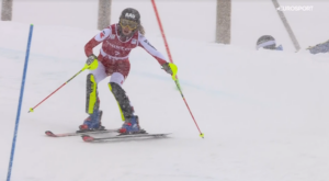 Z numerem 6 do rywalizacji wkroczyła Mistrzyni Świata Camille RAST. Reprezentantka Szwajcarii, która po wypadnięciu już w 1 przejeździe w SESTRIERE straciła plastron liderki Slalomu dzisiaj po błędach Zrinki miała szansę odrobić straty. Ostatecznie jednak Camille popełniła ich jeszcze więcej i na metę wjechała z stratą 1,60 sekundy, co dało jej dopiero 14 miejsce przed 2 przejazdem!