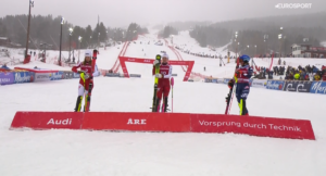 Jako ostatnia z bramki startowej umiejscowionej na 586 metrach na trasę zlokalizowaną nad jeziorem ARESJOEN ruszyła 100-krotna triumfatorka PŚ, Mikaela SHIFFRIN. Mistrzyni Świata w Kombinacji Alpejskiej w drugim przejeździe nie była tak skuteczna jak o poranku i od góry na każdym pomiarze czasu traciła trochę setnych z swojej przewagi.