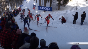 Za nimi do Erika VALNESA i Haavarda TAUGBOELA dobiegła kolejna dwójka, Federico PELLEGRINO i Lauri VUORINEN. W połowie drugiej dziesiątki walczyli Perttu HYVARINEN, Jens BURMAN i Jules LAPIERRE. Bardzo słaby bieg notował dziś William POROMAA, który od początku nie przebił się do TOP30. Tylko troszeczkę wyżej plasował się Jan Thomas JENSSEN.
