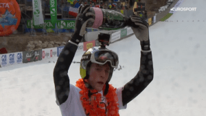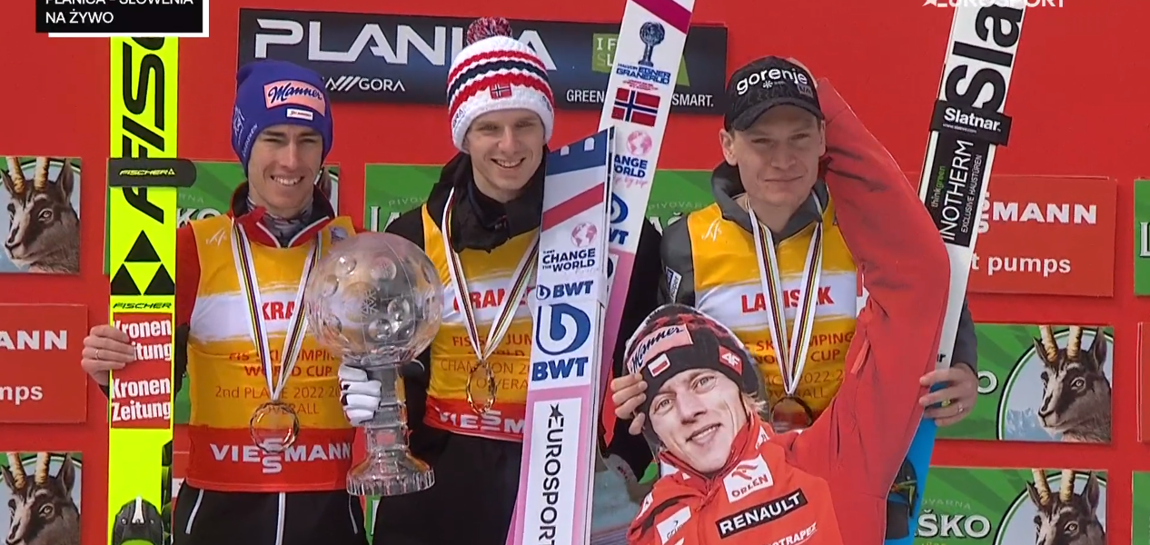 Anze LANISEK jednak dokonał FANTASTYCZNEGO GESTU – na podium Klasyfikacji Generalnej wszedł wraz z podobizną Dawida KUBACKIEGO!!! A następnie na szyi DAWIDA zawiesił swój medal!!! Wielki gest wielkiego człowieka!!!