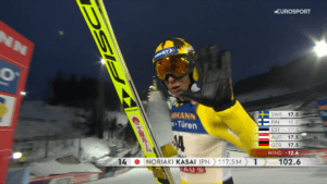 Mimo obniżenia belki na 6 równie daleko poleciał Lovro KOS. Triumfator z LAKE PLACID skoczył z niższej belki 134 metry, a do tego nieźle wylądował. To musiało dać i dało prowadzenie o aż prawie 8 punktów nad Ryoyu.