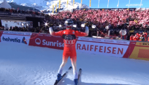 Pierwszą piątkę kończył pierwszy Szwajcar, Justin MURISIER. Tysiące kibiców wzniosło niesamowity doping i świetny technik ruszył agresywnie.