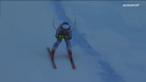 Szybko jednak oczy wszystkich przeniosły się na start – jako ósma na starcie w czerwonym plastronie liderki stanęła Sofia GOGGIA. Od startu Sofia objęła prowadzenie i jadąc na pełnym ryzyku dalej utrzymywała prowadzenie, chociaż nie jechała idealnie czysto.