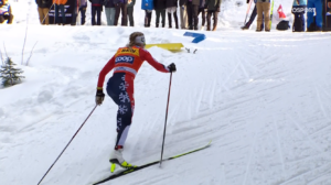 Na 4 miejscu zaraz finiszował Harald Oestberg AMUNDSEN, ale po chwili na tej pozycji zmienił go Johannes KLAEBO, który może być zadowolony z tego występu w bardzo trudnym dla niego biegu na czas.