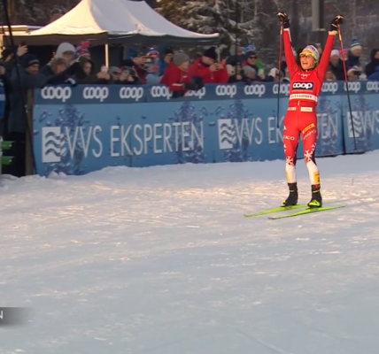 Po ponad minucie na metę dotarł Johannes KLAEBO, który z stratą ponad 1 minuty do Haralda Oestberga AMUNDSENA dzisiaj zajął 14 miejsce – spokojnie wystarczające do wykonania kolejnego kroku do celu jakim jest KRYSZTAŁOWA KULA – Edvin ANGER, który dotarł do mety później stracił jeszcze 1 minutę więcej i zajął dopiero 40 miejsce.