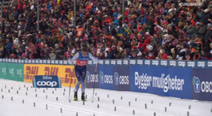 Minutę za nim po pokonaniu podbiegu nad strzelnicę, a następnie przejazdu przez mostek i przebiegnięciu ostatniej prostej przed wielką trybuną na metę dotarł William POROMAA. 24-latek po walce do końca WYPRZEDZIŁ o dokładnie 2 sekundy Simena i był pewny 2 miejsca.